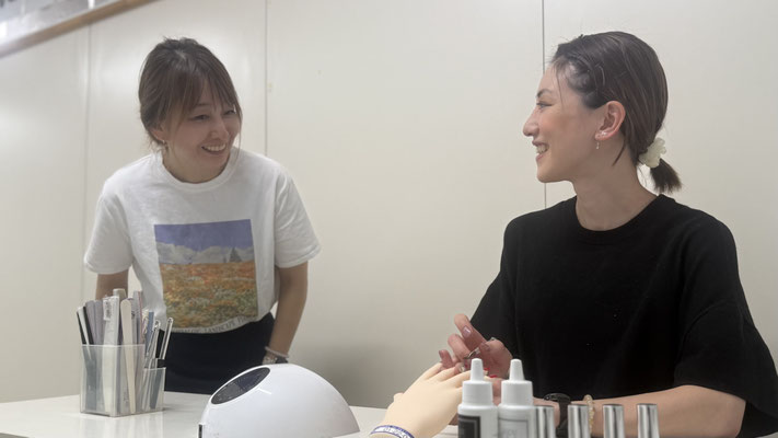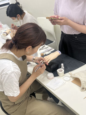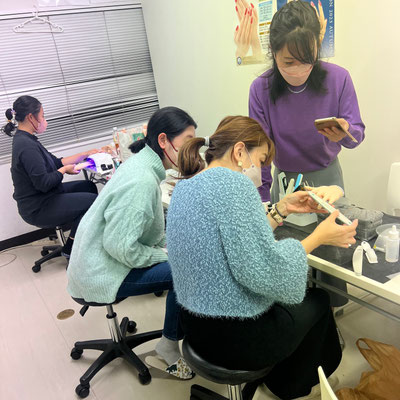 当校では、3級検定試験の登録会場に指定されているので、自校で受験できる可能性があります。ジェル検定も初級は実技試験免除、中・上級は自校での受験が可能です。通いなれたスクールで安心して受験できるのは認定校ならではです。また、本部認定講師が在籍しているので、衛生管理士取得セミナーも随時開講しています。