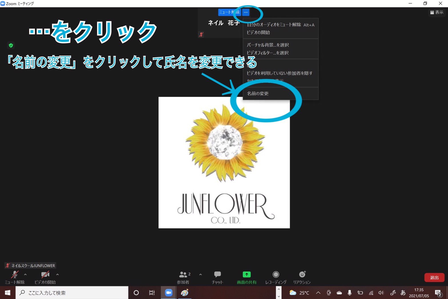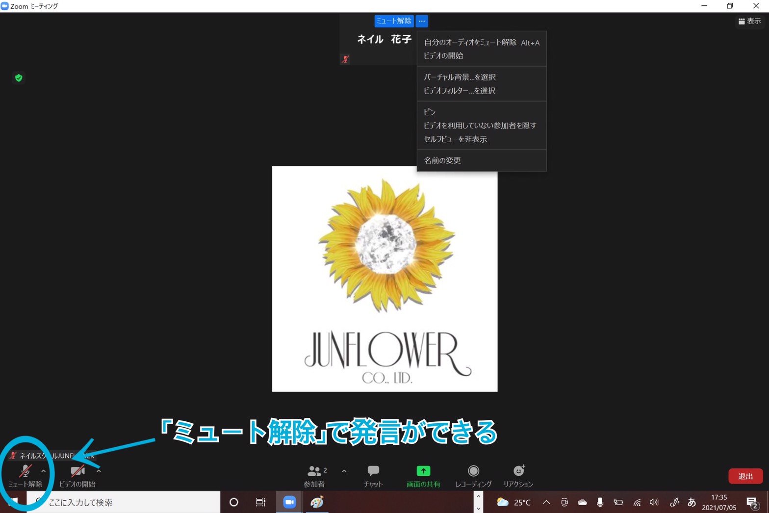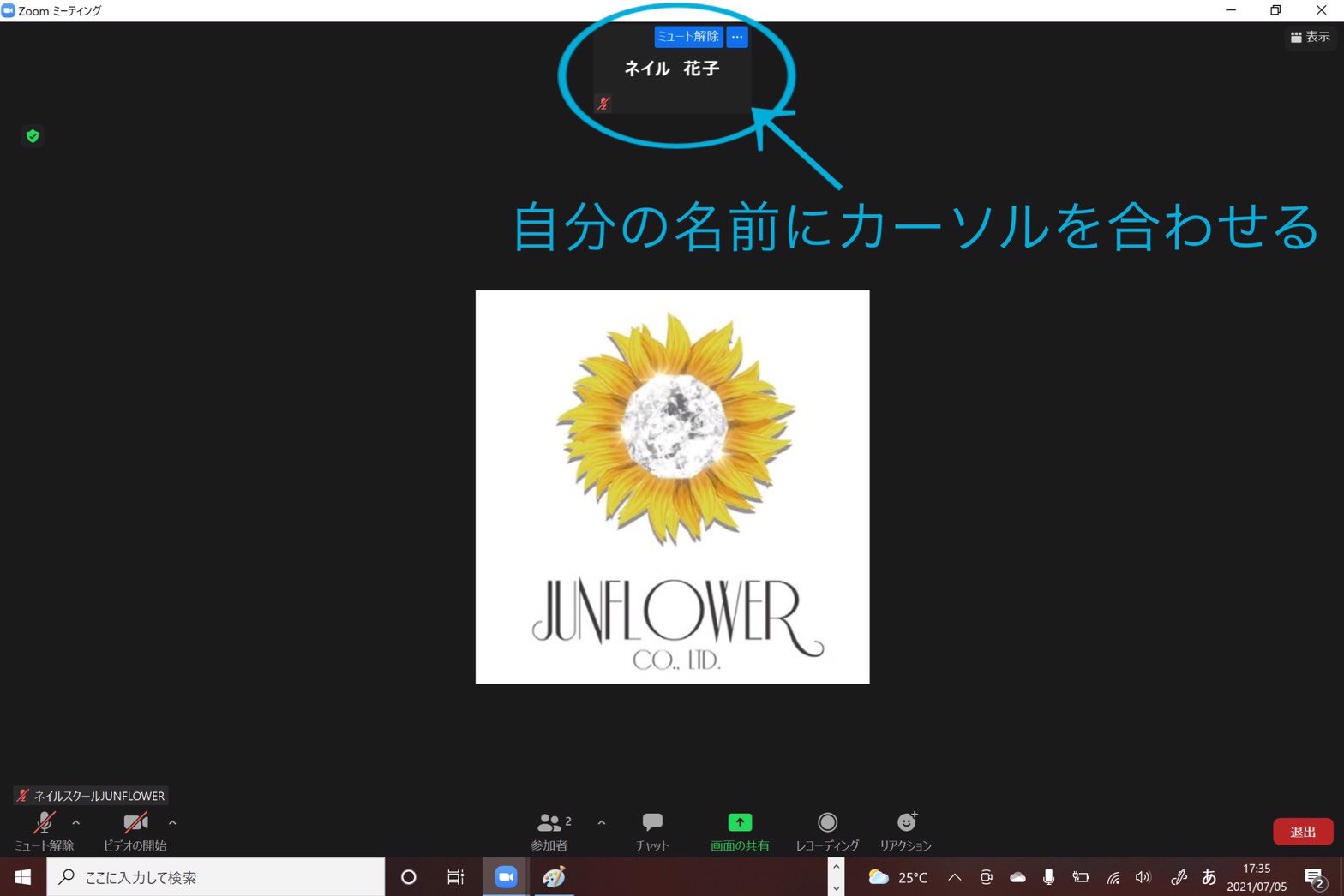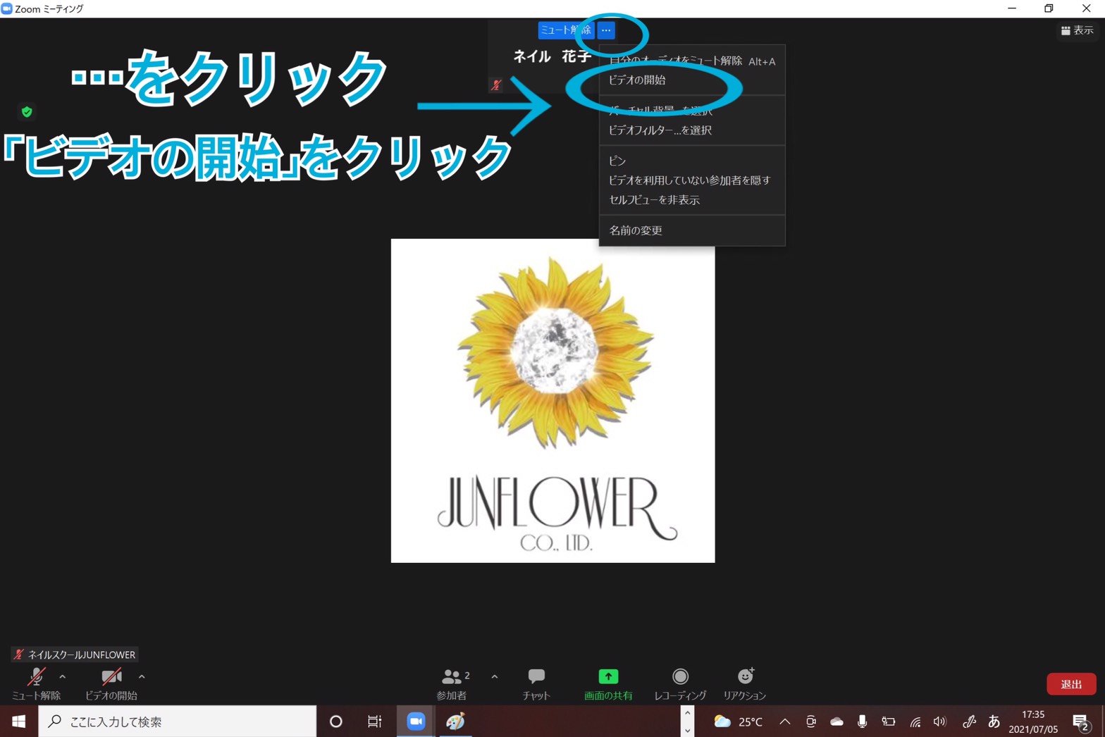 自分のビデオをオンにする