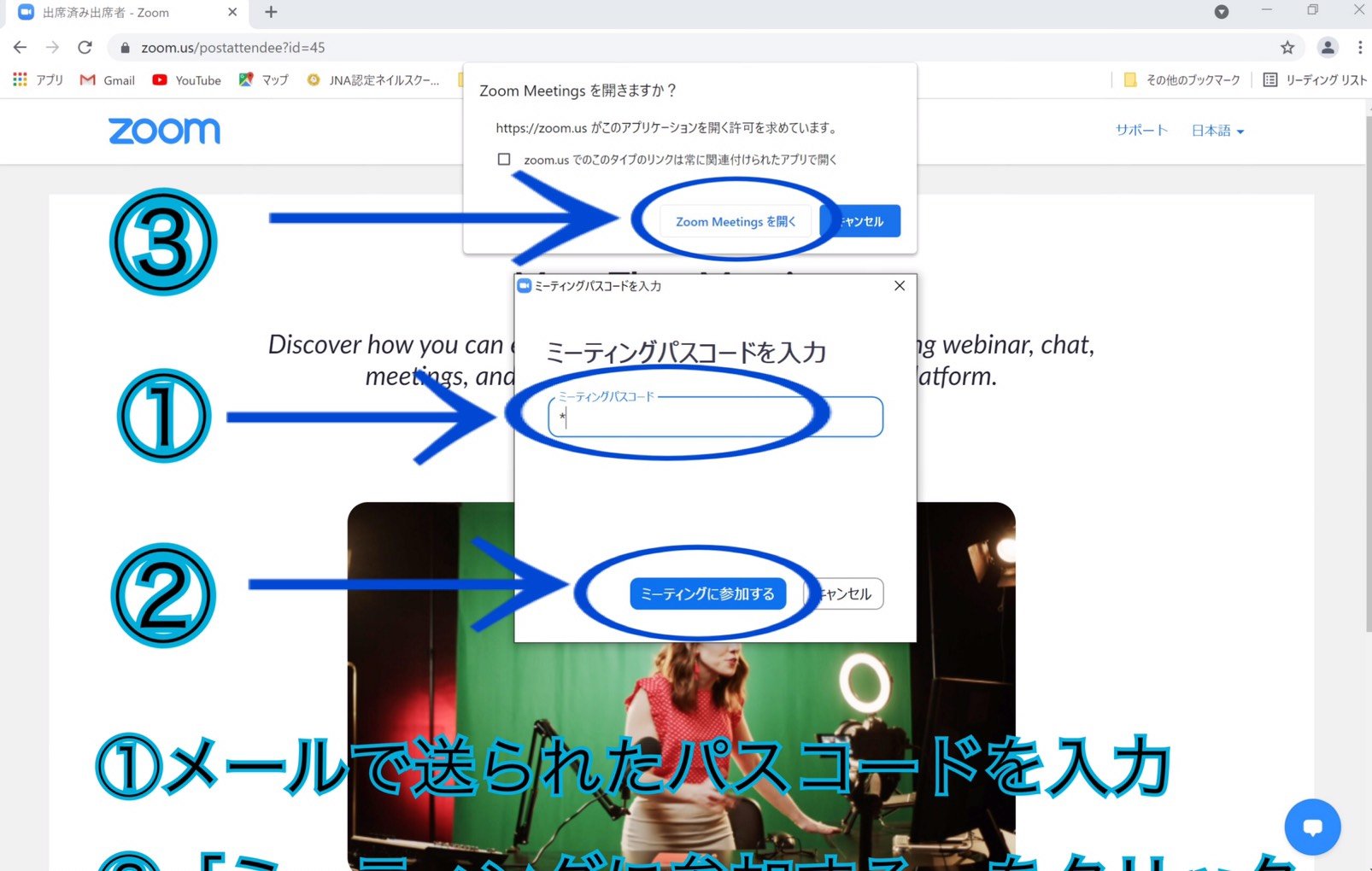 ③「ミーティングに参加する」をクリック