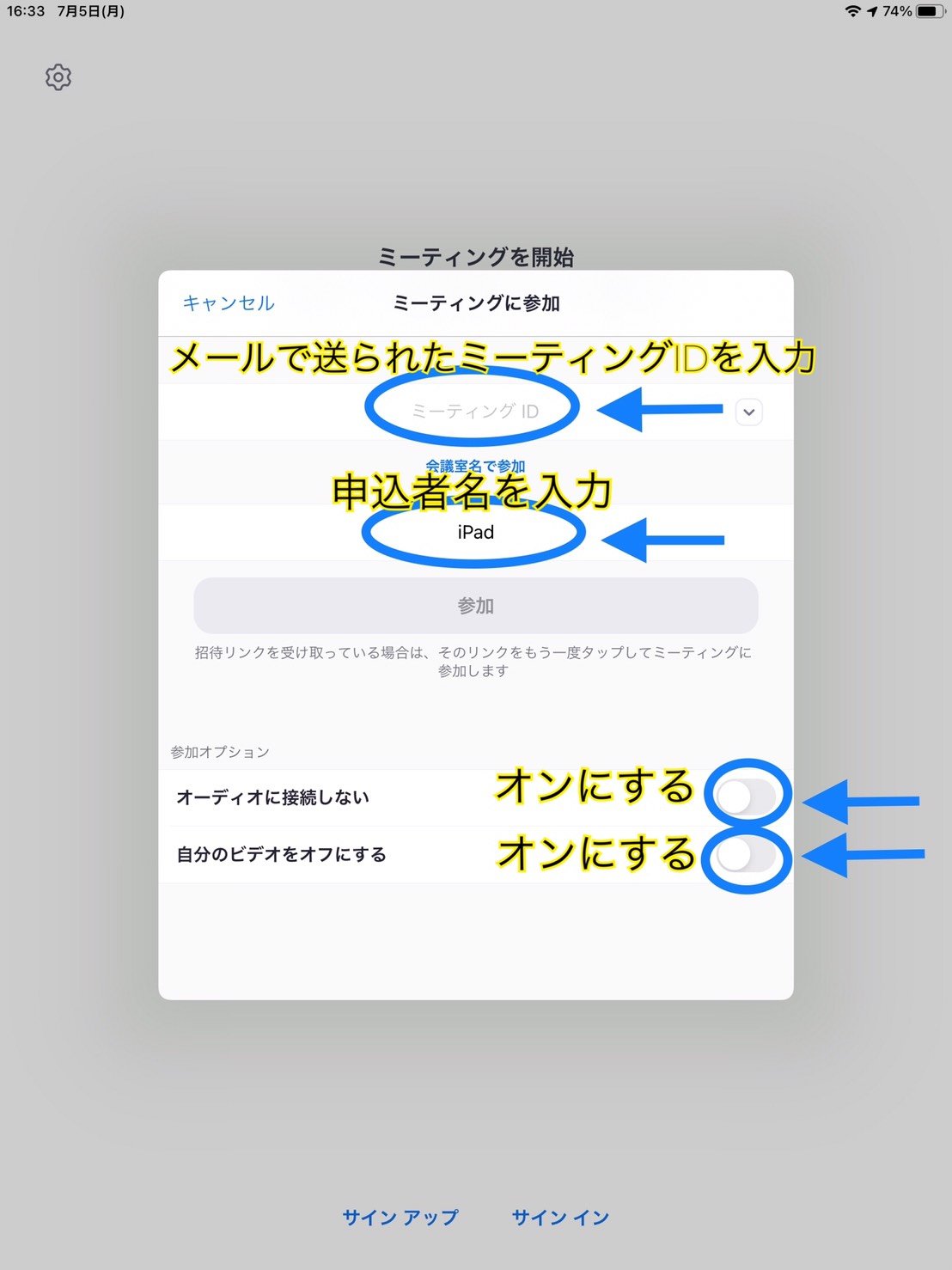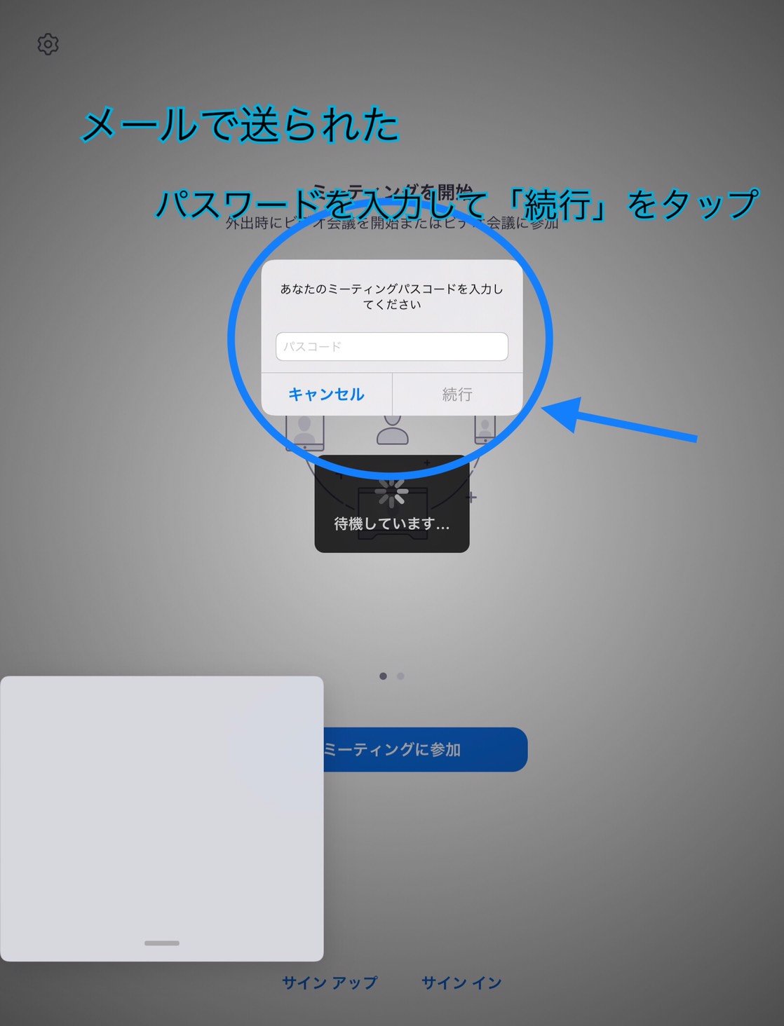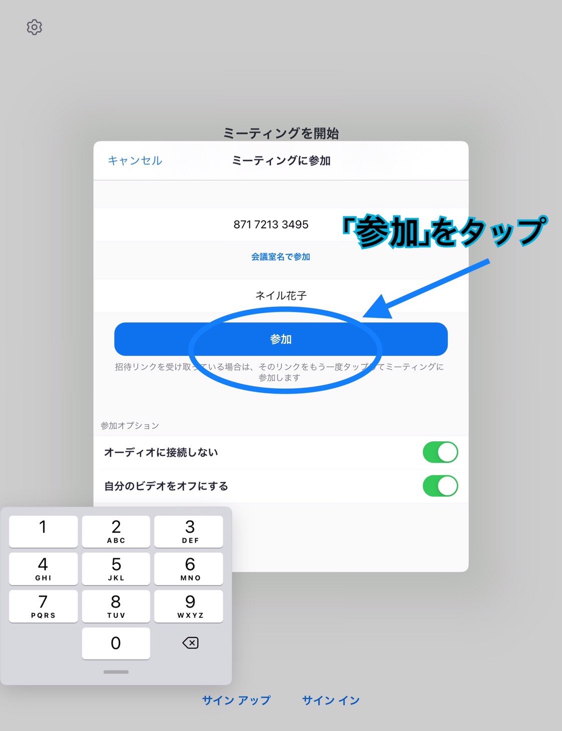 ⑥「ミーティングに参加」をタップ
