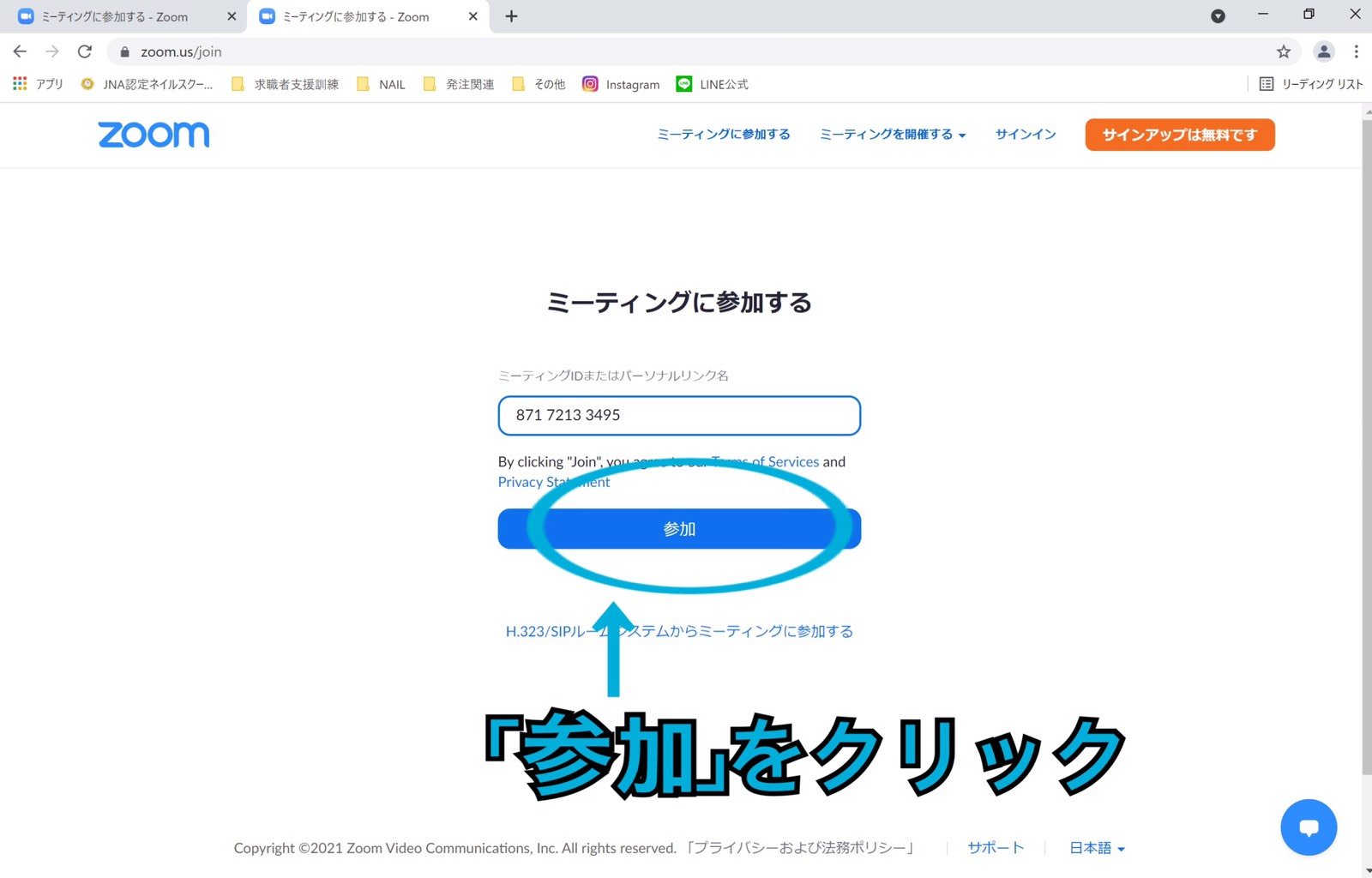 ⑤「参加」をクリック