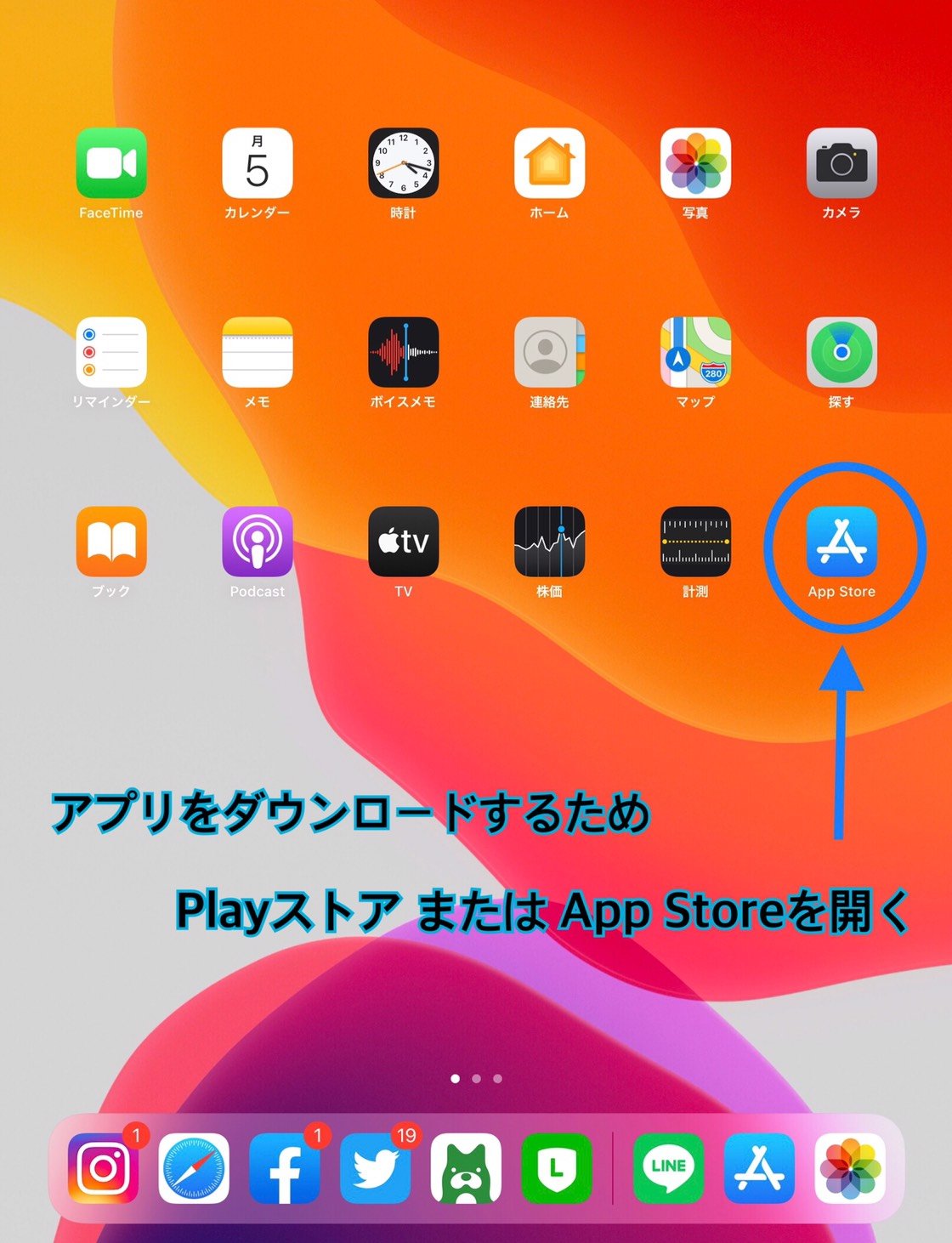 ①アプリをダウンロードするためPlayストアまたはApp Storeを開く