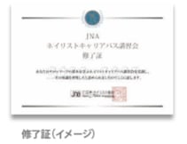 適正な知識とスキルを修得したと認められた方に、「JNAネイリストキャリアパス講習会」修了証が授与されます。