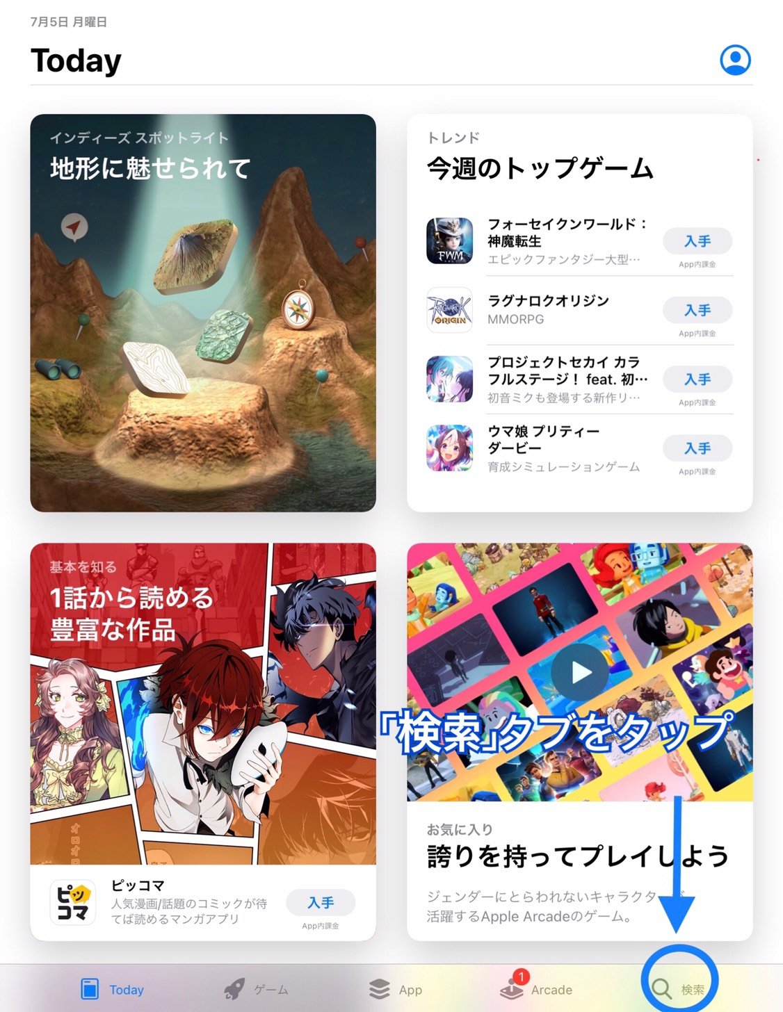 ②「検索」をタップ
